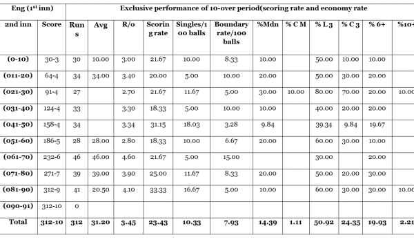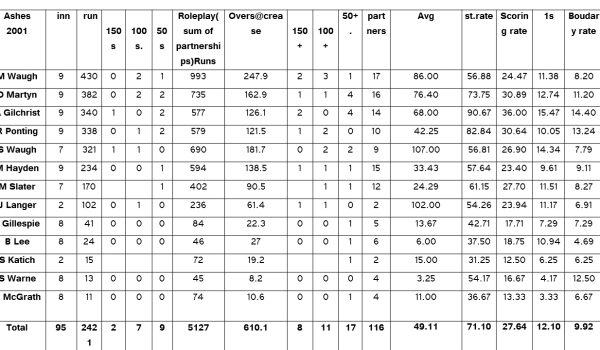 In the turn of this century run rate of 3 per over was considered fast-scoring for Test cricket. Australia started this trend of scoring fast, and interestingly their rate was 4.27 per over during their tour of UK in 2001. … Continue reading