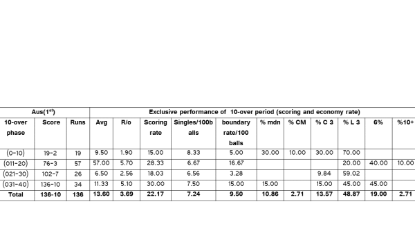 Here is a performance card and 10-over phases of 4th Ashes Test played at Trent Bridge, Nottinghamshire. … Continue reading