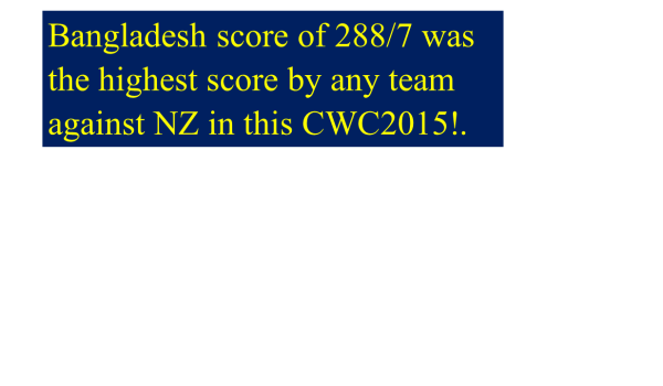 Bangladesh batsmen did exceptionally well, especially on a surface which they are not accustomed to. In recent past their average score first batting has been very good@260. In this WC it jumped to 276(3 games). Batting was the reason for … Continue reading